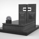 Projekt nagrobka, widoczny na umieszczonych wizualizacjach, jest pomnikiem wykonywanym przez nasz warsztat. Posiada on nowoczesny, prosty i dopasowany do siebie krój. Kamienna wstawka z kontrastowego kamienia między ramą a nakrywą, dodaje mu charakteru. Wyróżnia się on kamiennym krzyżem w centrum oraz dopasowanymi do niego tablicami.